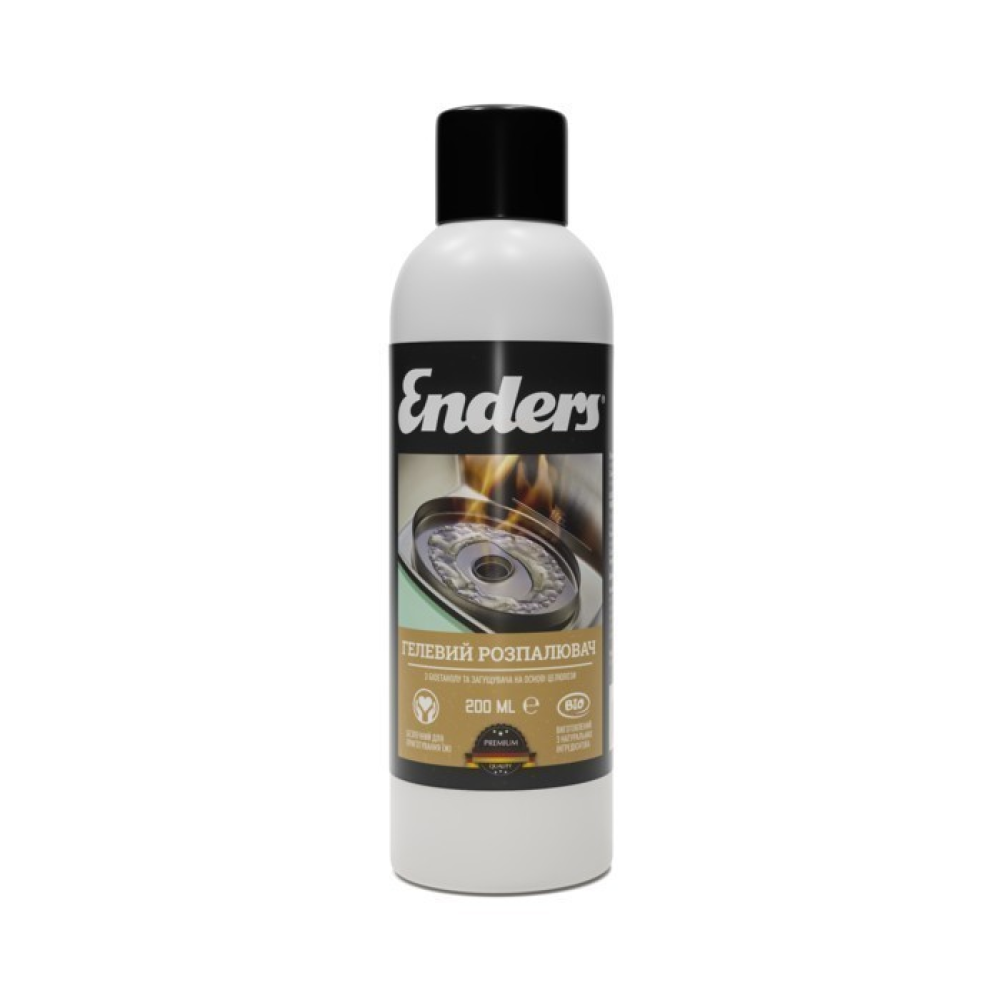 Універсальний гелевий розпал Enders призначений для швидкого та впевненого розпалювання будь-якого твердого палива (дерев'яне вугілля, вугільні брикети, дрова, торф), що використовується у вугільних грилях, мангалах, камінах та багаттях. Головна перевага розпалювача гелю Enders полягає в тому, що він виготовлений на основі біоетанолу і є повністю безпечним для здоров'я людини при приготуванні їжі на вогні або вугіллі. Гелевий розпалювач Enders не має у своєму складі токсичних речовин і метанолу, не змінює смаку їжі і не має неприємного запаху, а також не залишає кіптяву і не виділяє дим у процесі горіння. Місткість розпалювача зручна у зберіганні, транспортуванні та використанні. Якщо Ви використовуєте вугільний гриль Enders Aurora, то згідно з інструкцією від виробника вам знадобиться саме фірмовий гелевий розпалювач Enders, оскільки він має високий ступінь щільності, не розтікається і при дотриманні правильного режиму дозування не може потрапити у повітропровід гриля. Зауважте, що використання рідкого або гелевого розпалювача іншого виробника може призвести до псування гриля Enders Aurora без гарантійного ремонту.Характеристики Гелевий розпалювач