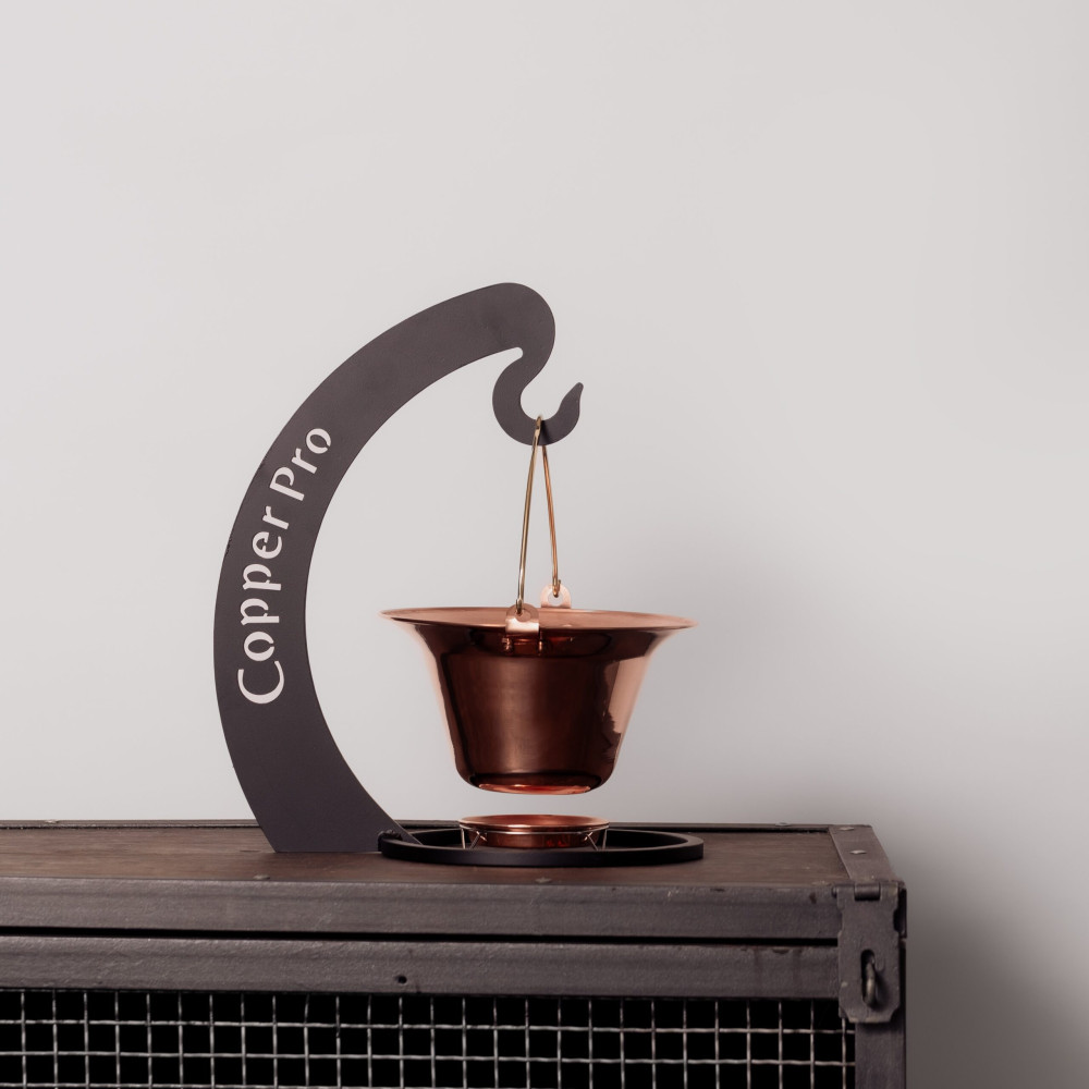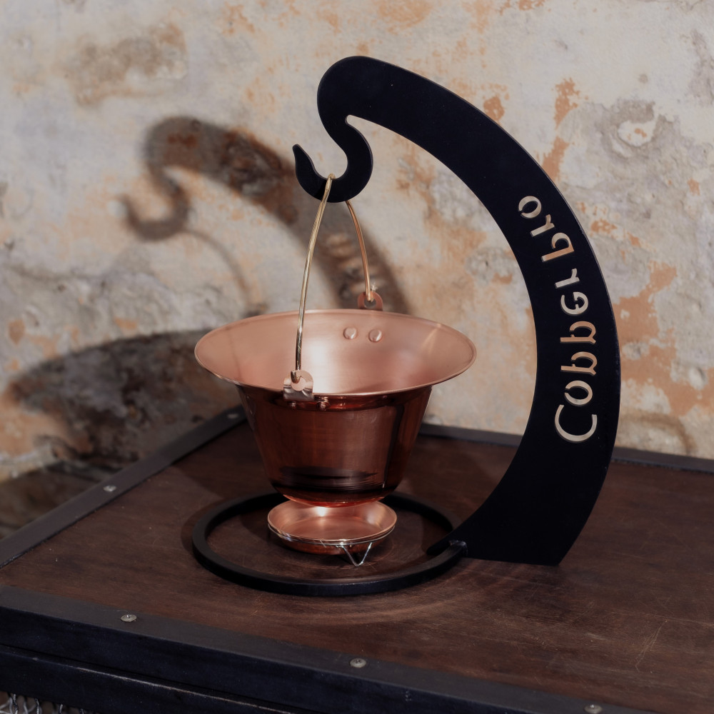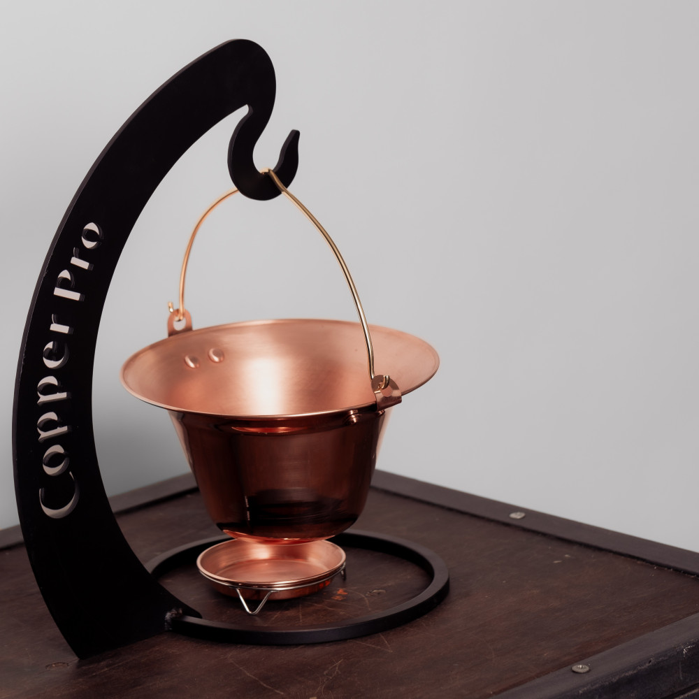 Мідна фондюшниця – це оригінальний горщик для сервірування, виготовлений з міді, що висить на кованій підставці.