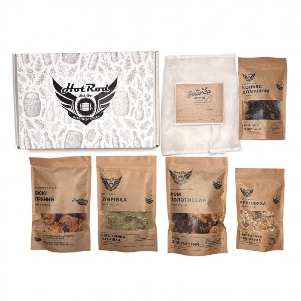 Усередині — 5 готових міксів спецій і трав, кожен із яких розрахований на 3 літри напою. Усі суміші створені на основі натуральних інгредієнтів, без штучних ароматизаторів і барвників.