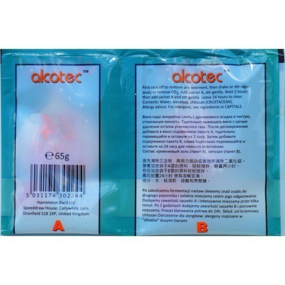У складі Alcotec Turbo Klar – кремнієва золь, хітозан.