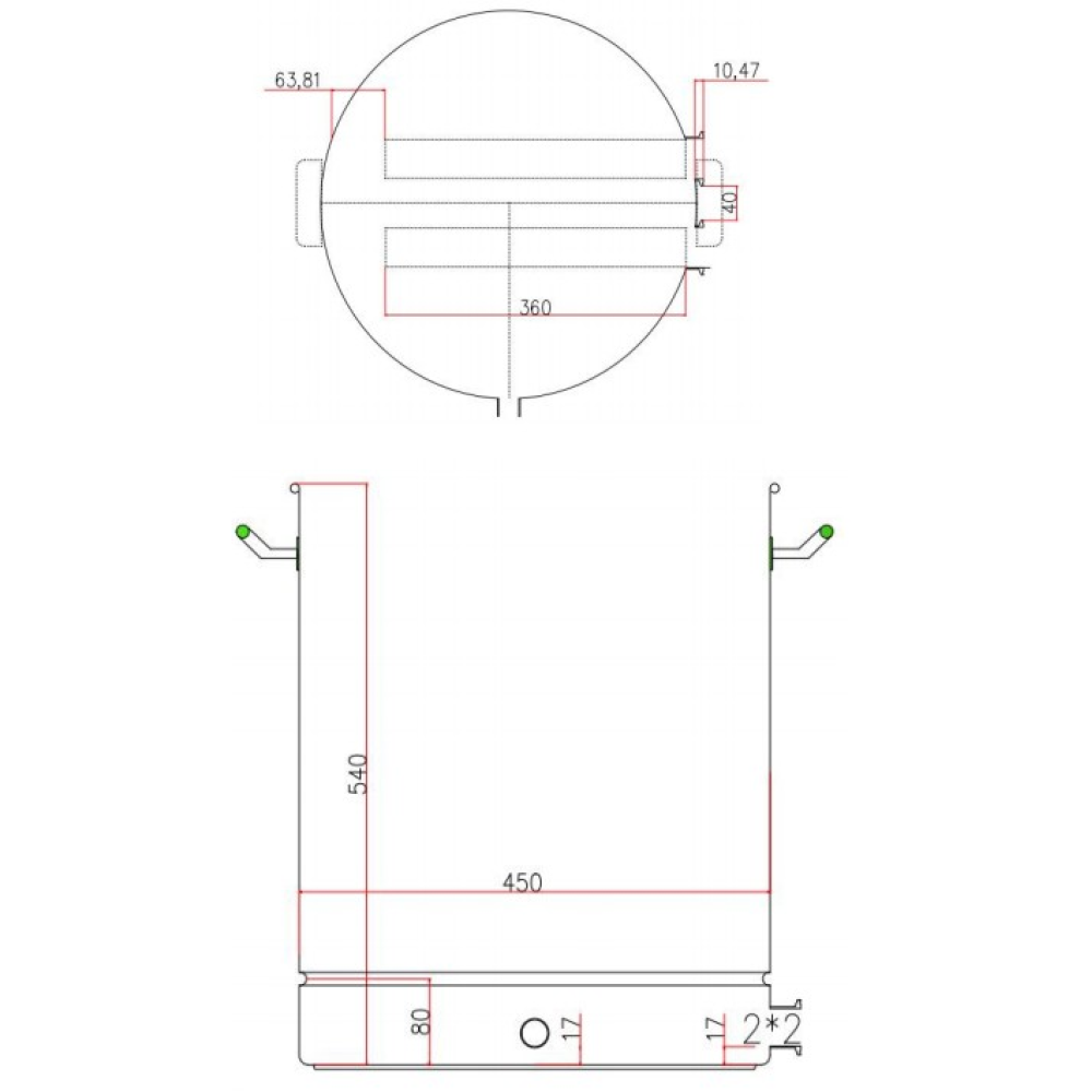 - Розміри (діаметр/висота з кламп): 450 мм/640 мм
