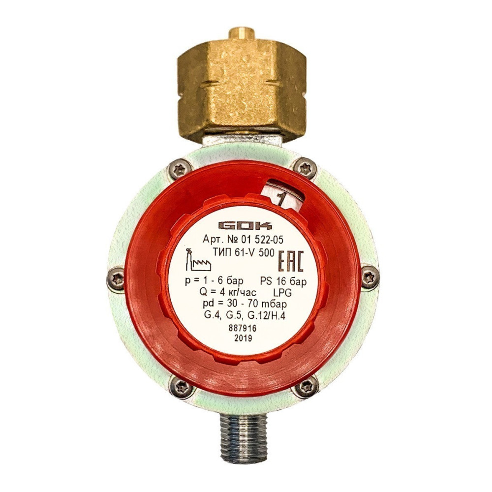 Регулятор низького тиску тип 61-V500 призначений для регулювання тиску газу в побутових газових приладах, газобалонних установках та газових гарматах.
