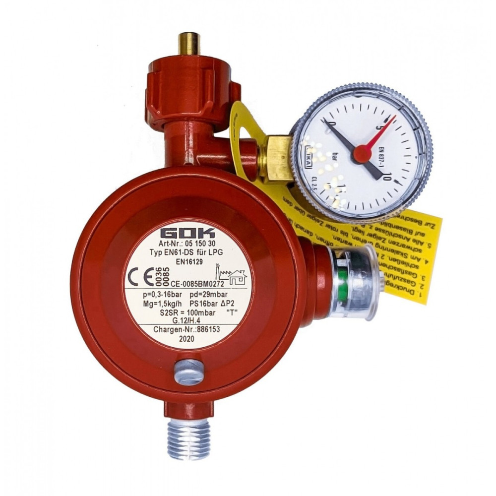 Огляд товару Регулятор тиску газу GOK EN61-DS 1,5 кг/год. 29мбар KLFxG1/4LH-KN ТАЄ UEDS