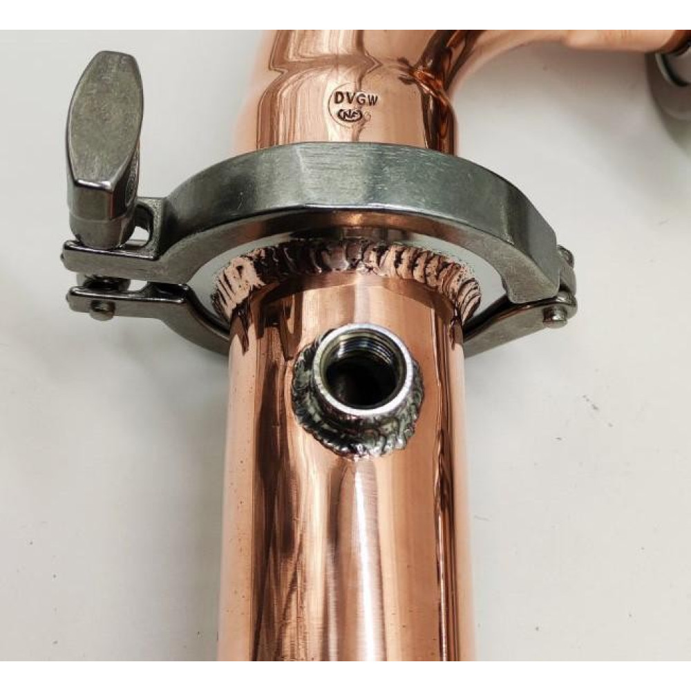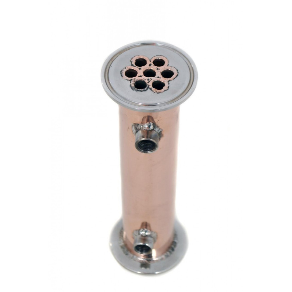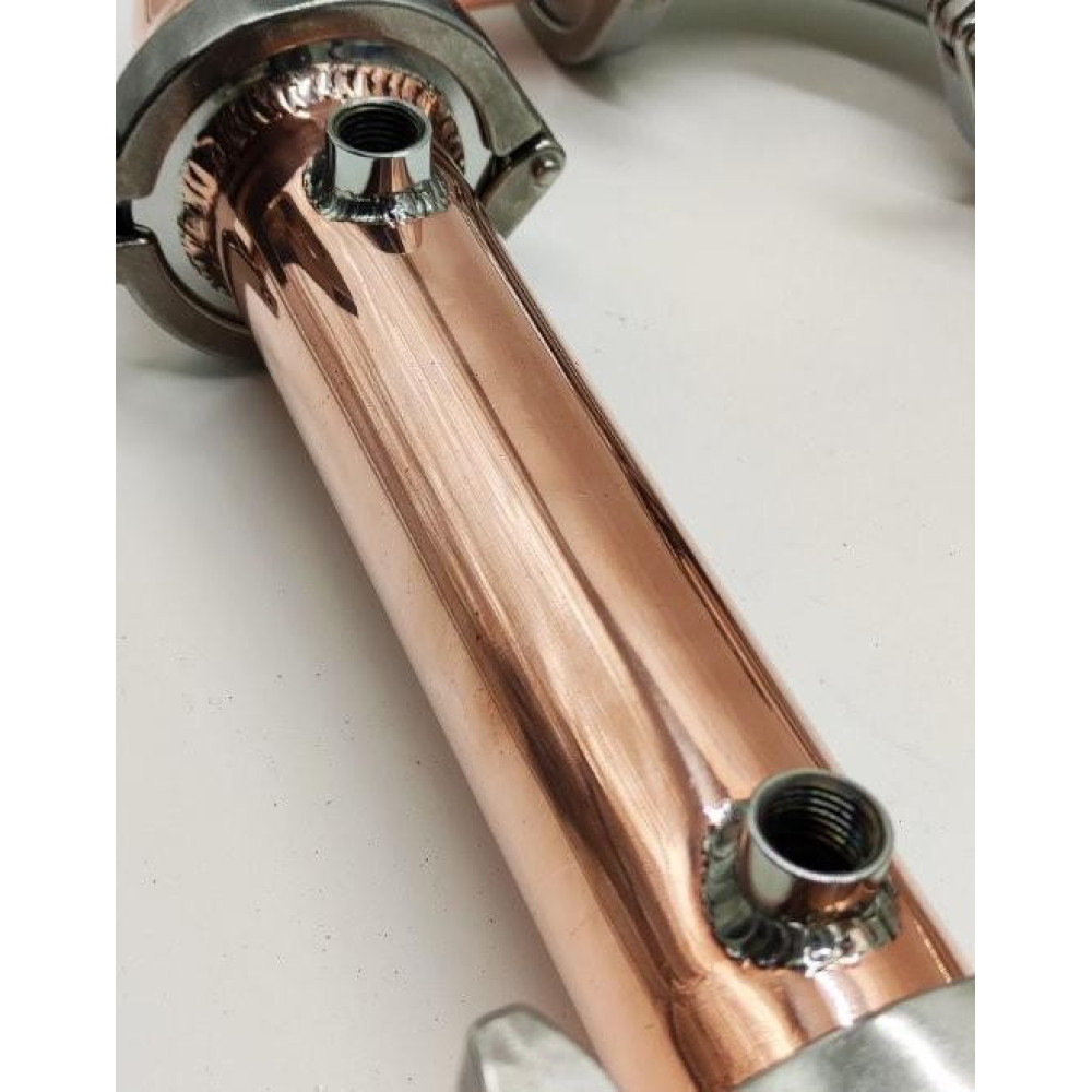Дефлегматор изготовлен из пищевой меди марки М1, которая является безопасным и долговечным материалом. Диаметр трубы Ø42мм позволяет использовать дефлегматор с большинством стандартных фитингов.