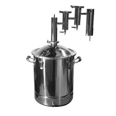 Как дистиллятор самогонный аппарат, он предназначен для переработки сырья, такого как фрукты, зерновые или сахар в высокопроцентный спирт.