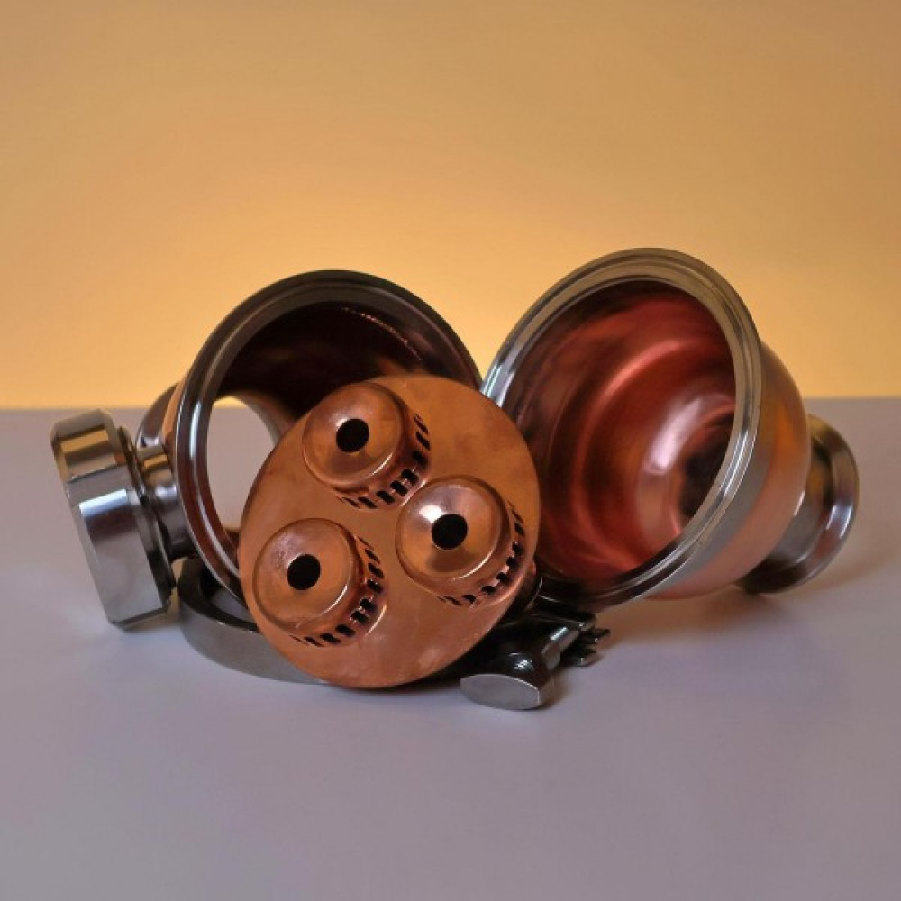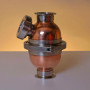 Медная Торпеда Миньон оснащена смотровым диоптром, который установлен под оптимальным углом для удобного осмотра барботажных колпачков. Подключение производится с помощью 2-дюймовых клампов. Торпеда разбирается и легко чистится благодаря 4-дюймовому клампу, соединяющему две половины. Внутри конструкции расположена медная барботажная тарелка с тремя колпачками, что способствует эффективной дистилляции.