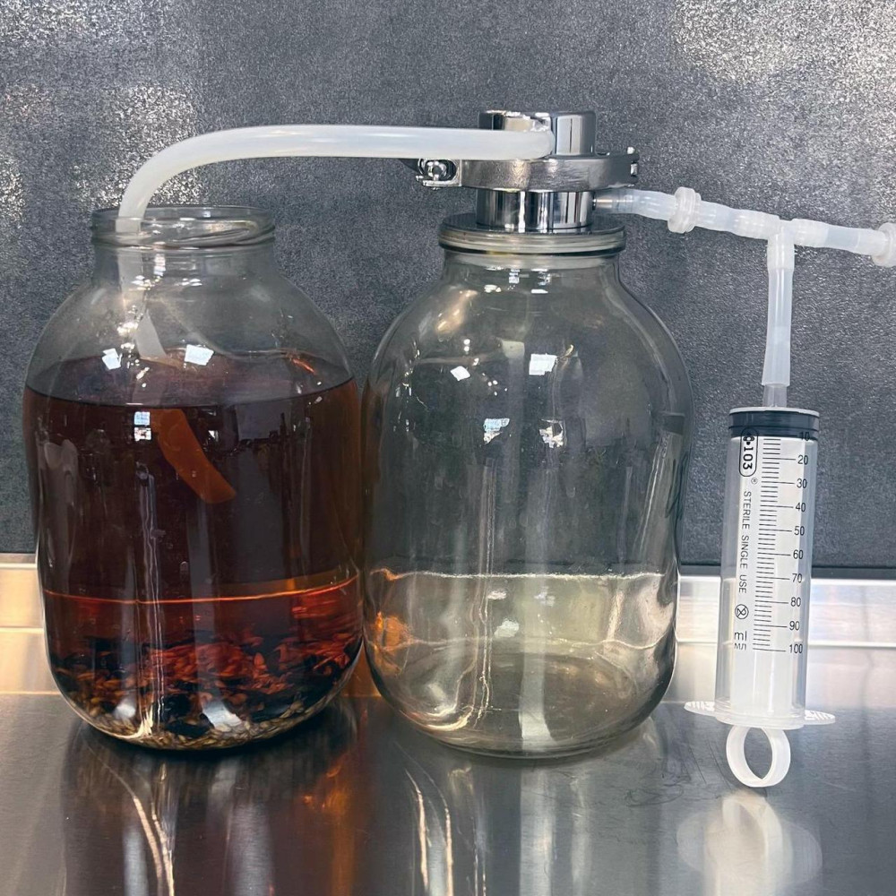 - Плавно откачайте воздух шприцом из приёмной банки.