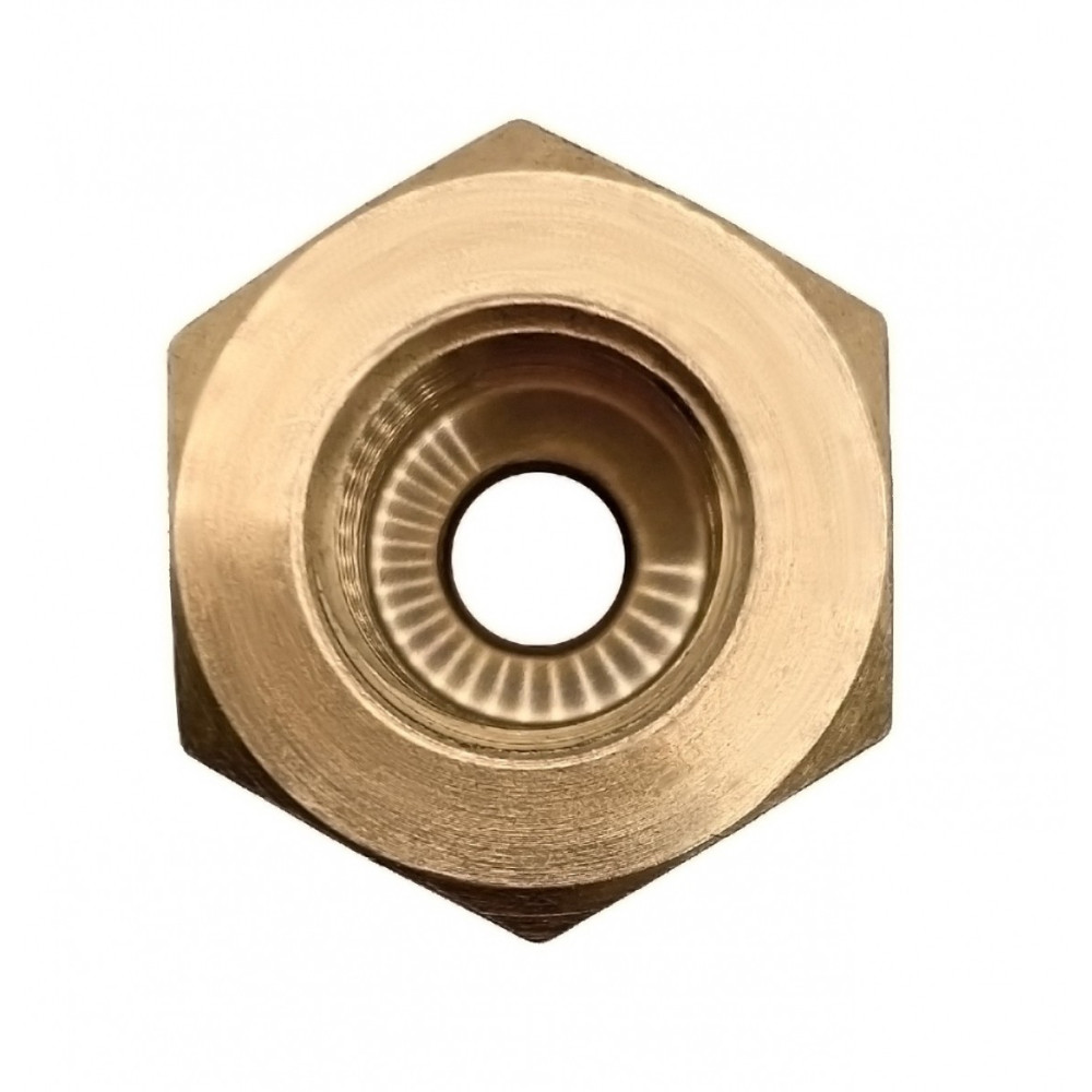 Латунний штуцер-перехідник, з вхідною різьбою IG G1/4LH та зовнішньою AG G1/2 - для підключення редуктора, до газового шлангу.
