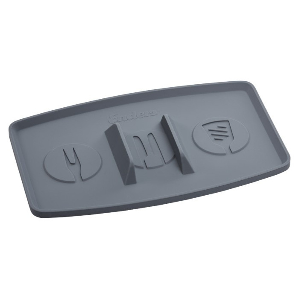 Силіконова підставка для столових приладів – очевидна зручність якої не викликає сумнівів, у рази знижує забрудненість робочого простору та задає окреме місце для приладів, має утримувачі для щипців. Виготовлений із силіокна, що витримує температуру до 350 градусів і не взаємодіє з миючими засобами.Характеристики Силіконова підставка для столових приладів