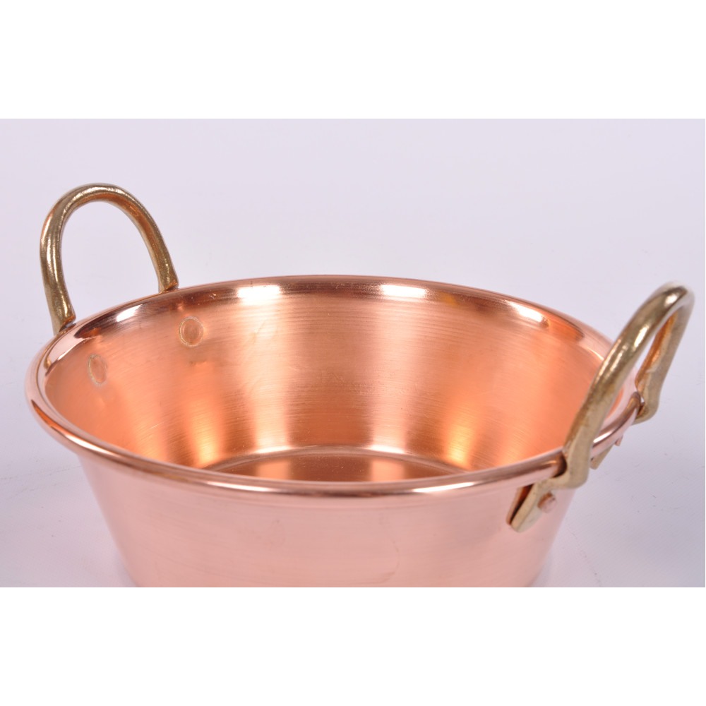 Проста відкрита ємність із товстостінної міді з практичними бічними ручками, яка завжди є на кухні у гарної господині. Ця вишукана ємність ідеально підходить для приготування смачного домашнього варення, а також для приготування шоколаду та різних соусів.