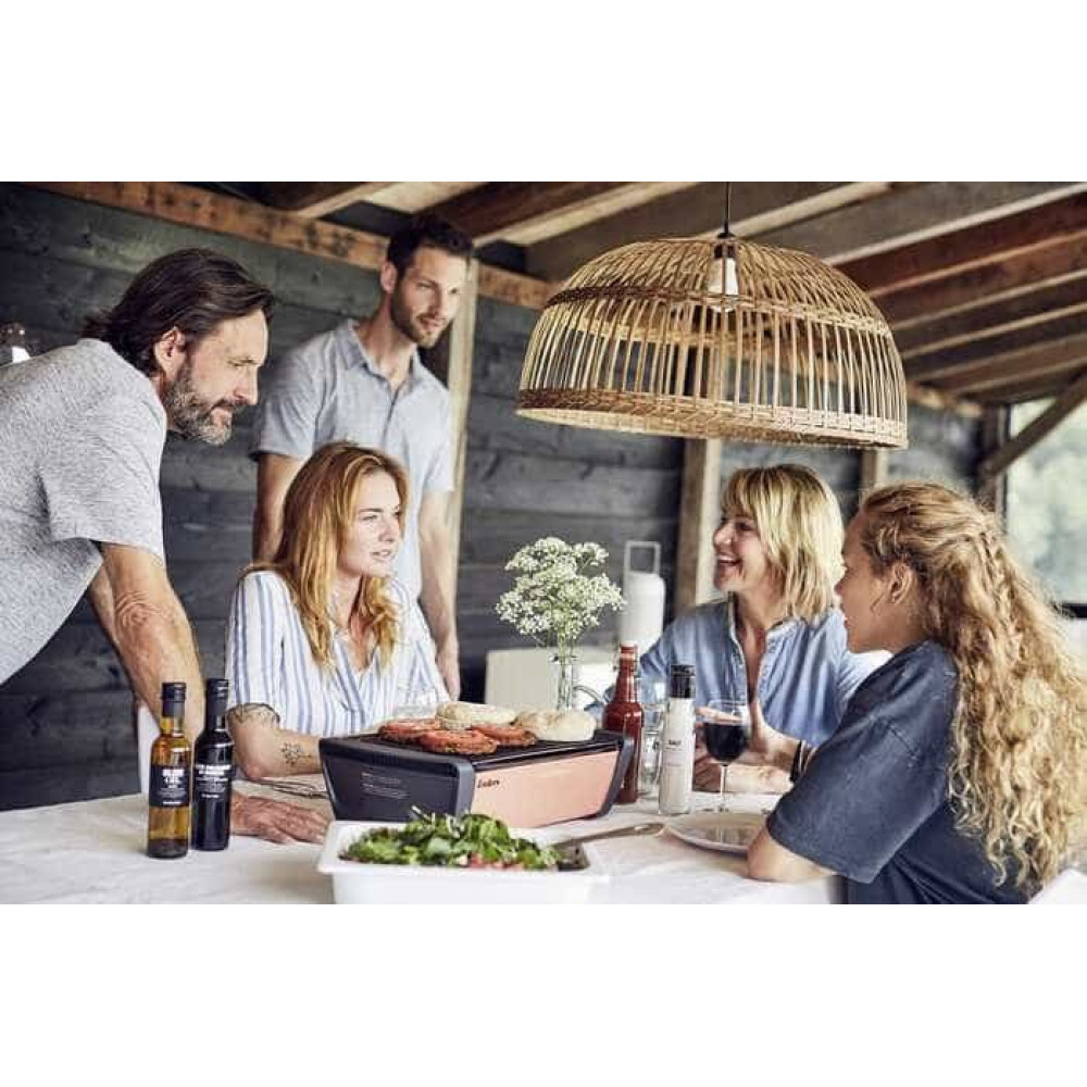- Технологія вентилятора E-FAN BBQ: практично без диму, безшумний вентилятор, живлення від батареї, повербанка чи блоку живлення.
