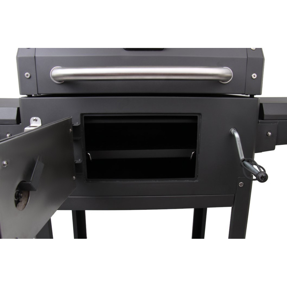 - Піддон для вугілля, що регулюється по висоті, дозволяє легко регулювати температуру приготування.