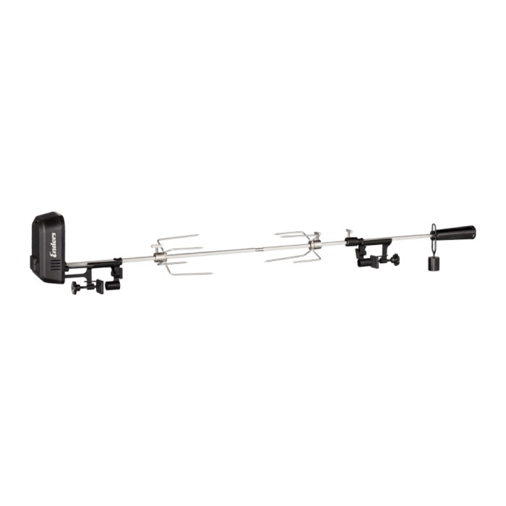 Підходить для всіх грилів KANSA II PRO 3+4, Monroe PRO 3+4, BOSTON 3+4. Має плавне регулювання швидкості до 4-х обертів за хвилину. Простий у використанні і легко миється. Виготовлений із тугоплавких матеріалів. Працює від мережі ~220v або від батарейок типу – LR 20 (2шт. не входять до комплекту). Дана модель відрізняється універсальним кріпленням, що не потребує монтажних отворів та додаткових інструментів.Характеристики Вертел для грилів серії KANSAS II PRO 3+4, MONROE PRO 3+4, BOSTON 3+4